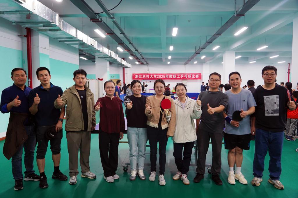 近日,浙江科技大学2025年教职工乒乓球比赛在小和山校区体育馆举行,后勤分工会积极组织,教职工热情响应。