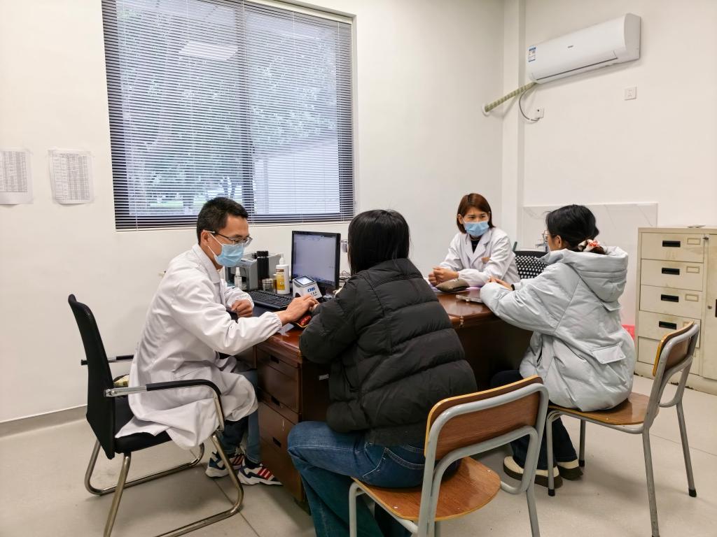 卫生所医护人员为师生把脉问诊,耐心解答健康疑问。血压计、血糖仪、体脂秤轮番上阵,一声声细致的健康提醒在耳边响起:“不能经常熬夜,要注意规律作息”“体脂偏高了,要多运动”。