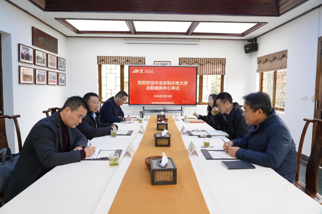 3 月 19 日上午,华北水利水电大学后勤服务中心党总支书记赵振国一行来我校后勤调研交流,中心主任王登科、党总支书记李建瑜和办公室主任李雪阳等热情接待来访同仁。